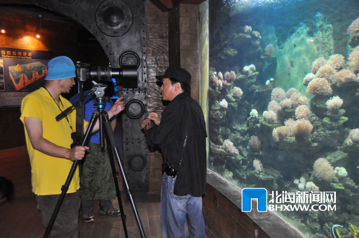 北海新闻网讯(记者徐庆伟)由中央电视台、广西电视台、北京天聚地和文化传播有限公司联合摄制的大型纪录片《秘境广西》,5月15日在北海海洋之窗进行拍摄。 记者跟随《秘境广西》摄制组来到海洋之窗。进到珊瑚厅,导演龙小波听取了海洋之窗讲解员介绍海洋生物珊瑚的分类、栖息地、色彩、生活习性等一些情况,龙导听完讲解员介绍后,选定了香菇珊瑚来拍摄。 龙导告诉记者,这部《秘境广西》一共分为3集,第一集是讲广西的地域、环境和气候。比如说北部湾气候影响内陆其他地方的植物的生长,在整个季节里边什么样的(气候环境),为下一集里边做个铺垫。第二集是讲广西的动植物,比如说白头叶猴,包括我们这一集里面讲述的海洋生物,也就是这个珊瑚,在这个海藻之间的关系,他们是一种矛盾又冲突的一种关系,但是又能假设是他们各自的生长环境中的一种独特性,就是很微观的一种东西。第三集主要讲的是人,就是我们广西人,主要是挑一些,选一些很特殊的但是又身怀绝技的比方攀岩的高手,比方很特殊的渔民或者是很有绝技的特殊的人,展示我们广西人文的东西。总导演是陈晓卿,也就是著名的《舌尖上的中国》的导演。摄制组分为4个小组,除了一个小组机动,另外三个小组就分别布点,按照计划来拍摄。 据了解,由中央电视台、广西电视台、北京天聚地和文化传播有限公司联合摄制的大型纪录片《秘境广西》今年开机拍摄,《秘境广西》导演龙小波、制片吴健、摄影陈浩、任绍威、宋秋庆、施杰等一行六人,5月9日—20日前往北海市采访拍摄涠洲岛、珊瑚、马尾藻、山口红树林及其他当地风光。 在今天的珊瑚拍摄之前,他们已经在涠洲岛进行了5天的拍摄,也曾经下海潜水拍摄。昨天回到北海,今天上午主要在海洋之窗拍摄一些珊瑚的镜头。下午拍摄北海市区风光,傍晚拍海边日落。 龙导说,这是中央电视台第9套首次和广西台合作。去年开始筹备,今年初开始拍摄至少年底,拍摄时间大概1年。因为要跑很多地方,几乎广西的所有县城都要跑遍,要求比较高,拍摄时间长,争取在中央1套播出。