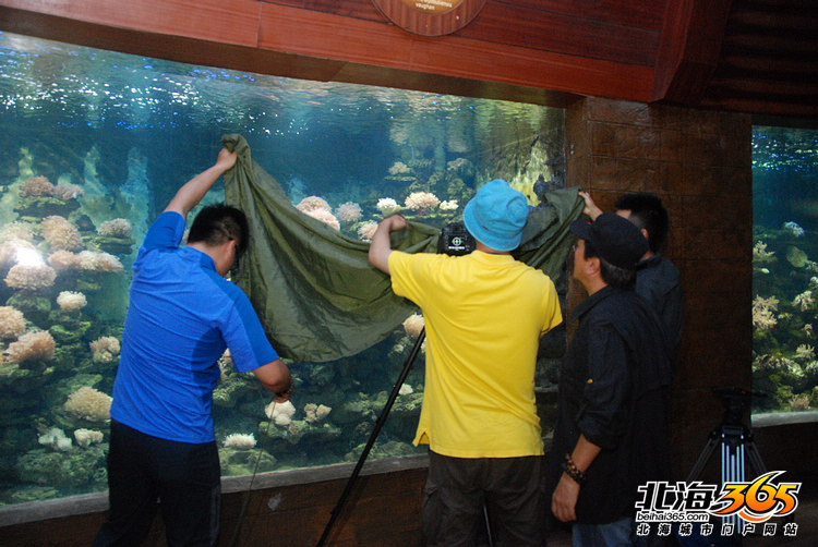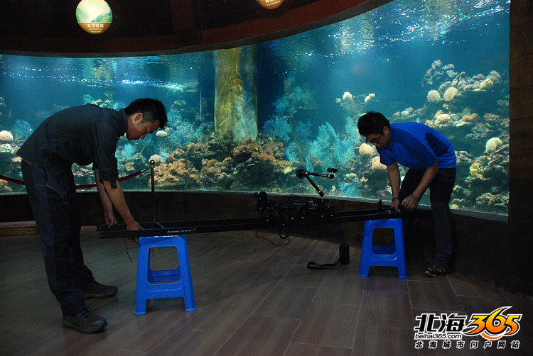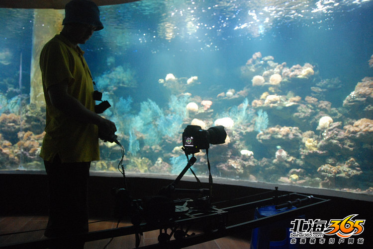 一部由中央电视台、广西电视台、北京天聚地和文化传播有限公司联合摄制的大型记录片《秘境广西》今年开机拍摄,最近几天一个摄制小组来到北海。今天上午,我跟随摄制组前往海洋之窗进行拍摄。 这个摄制小组一共6个人,他们将在北海待上11天,主要拍摄涠洲岛、珊瑚、马尾藻、红树林和北海风光。导演龙小波跟我说,在今天之前,他们已经在涠洲岛进行了5天的拍摄,也曾经下海潜水拍摄。昨天回到北海,今天上午主要在海洋之窗拍摄一些珊瑚的镜头。下午会拍摄一下北海市区的风光,傍晚再拍一下海边日落。 龙导告诉我,这部《秘境广西》一共分为3集,第一集是讲广西的地域、环境和气候。第二集是讲广西的动植物,比如北海的海洋生物、钦州的海豚等。第三集讲广西的人。总导演是陈晓卿,也就是著名的《舌尖上的中国》的导演。摄制组分为4个小组,除了一个小组机动,另外三个小组就分别布点,按照计划来拍摄。 这部大型纪录片去年开始筹备,今年开拍,预计要花整整一年的时间。因为季节的关系,龙导这一个摄制组在今年7、8月还要再来一次,拍摄其他的镜头。