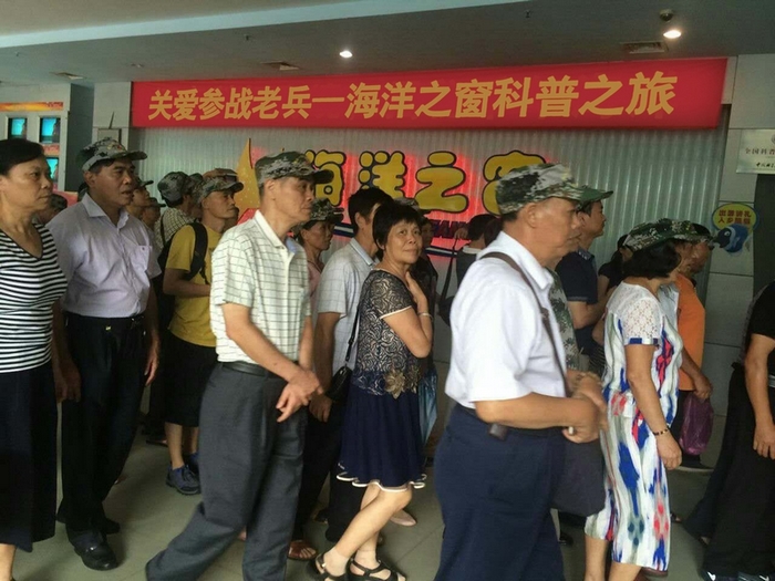2017年7月19日,在中国人民解放军建军90周年前夕,北海海洋之窗迎来了一批“特殊”的客人---来自全国各地的对越自卫还击作战参战退役的老兵们! 当年的这些身怀保家卫国坚定信念,朝气蓬勃与意气风发的热血青年们,如今都多已苍老,年近花甲,有些已双鬓白发。据悉,这些老兵们均来自当时的一六四师四九一团,该团曾参加对越自卫还击战中的直取巴外山、攻克凉山等著名战斗战役。这次相聚的退役老兵们多数来自四九一团的英雄六连,他们中的多数都曾亲历战争,浴血战场,保家卫国。他们所在的连队——六连,更是一支拥有着优良传统作风和顽强战斗意志的英雄连队。 来到海洋之窗展馆内,老兵们参观了神秘的大海、远古海洋、时光隧道、珊瑚海等十四大主题展厅。馆内丰富的水生动物也让革命前辈们大开眼界,老兵们纷纷拍照留念,仿佛时光倒流回到了年轻时的激情岁月里。一路听着讲解员生动的科普讲解,老前辈们领略了年轻时代因战争而没有领略过的海洋科技时尚、海洋神奇奥秘、领略海洋无限风光与海洋的博大精深。海洋之窗科普基地还通过发放海洋科普资料、配备科普讲解员、互动等多元化方式,为本次参加科普活动的老兵们提供了一次有意义、充满趣味的海洋文化之旅,丰富了老兵们的老年生活。 今后,海洋之窗将继续组织开展针对全方位人群的内容丰富、形式多样的的文化活动,向社会科普海洋知识,提高公共文化服务水平,让海洋文化深入人心。