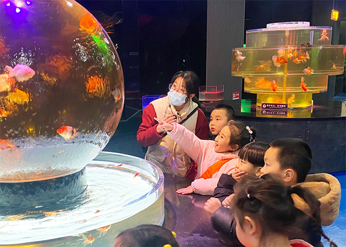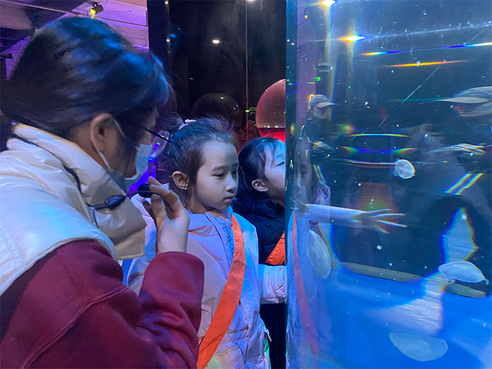 锦鱼堂各种灵动的小金鱼、水母迷宫种类繁多的治愈水母,让“小东北虎”们睁大好奇的小眼睛,欢欣雀跃~