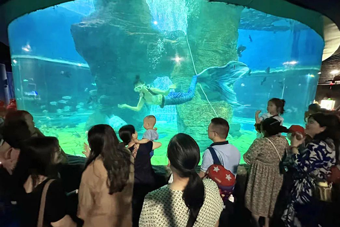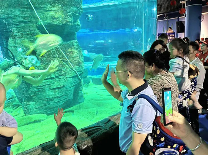 本次活动中,海洋剧场热闹非凡,家长和小朋友们在这里欣赏了精彩的美人鱼表演,领略人与自然和谐共处之美;观看了趣味十足的喂鱼,在讲解员的介绍中了解鱼类生存和进食的知识,结束后大家都意犹未尽。