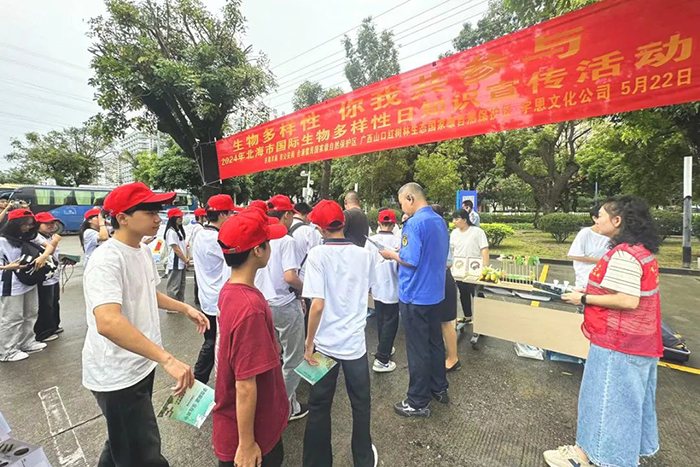 二、国际生物多样性日 5月22日是国际生物多样性日,当天上午,由市海洋局、市公安局、合浦儒艮国家级自然保护区、广西山口红树林生态国家级自然保护区、宇恩文化公司和海洋之窗共同主办的“生物多样性 你我共参与”知识宣传活动在海洋之窗大门举行。活动设置了海洋科普知识讲解、文创商品展销、集章打卡等项目,现场吸引了大批游客前来参与。