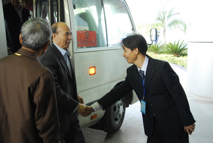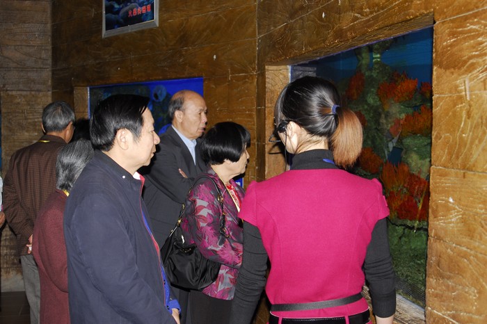 2011年12月2日,全国政协港澳台侨委员会副主任陈佐洱、原自治区政协主席陈辉光、原自治区政协副主席钟家佐在自治区政协常委黄簌鲁和北海市政协副主席滕朝祥的陪同下到海洋之窗参观指导工作。 迎接陈辉光 陈佐洱(左)、陈辉光(右)